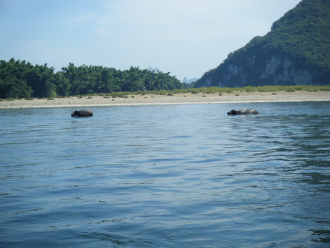 總體來說,漓江真的很美,跟江南的山水比起來漓江是大氣的。靜靜的漂在江上,腦袋放空,感覺時間就那麼靜止了,一切煩惱都會沒有了。我真想在漓江上做個筏工,反正機動的竹筏不用手工劃,每天漂在這美麗的山水間,該是有多愜意啊。。。。