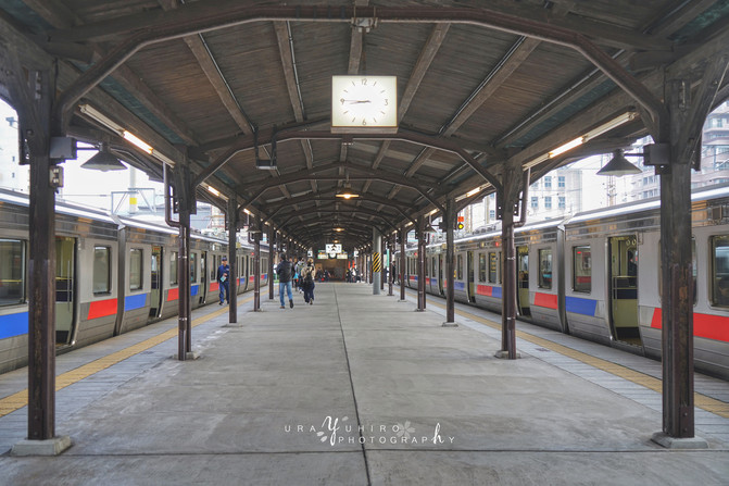 JR門司港站。站台的整體氛圍就非常復古了。