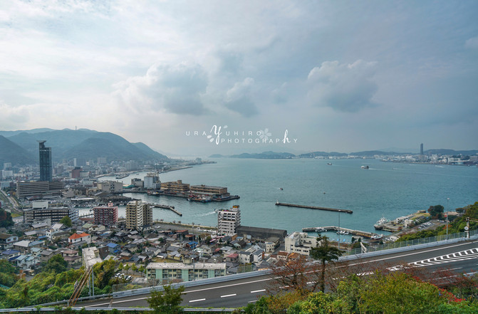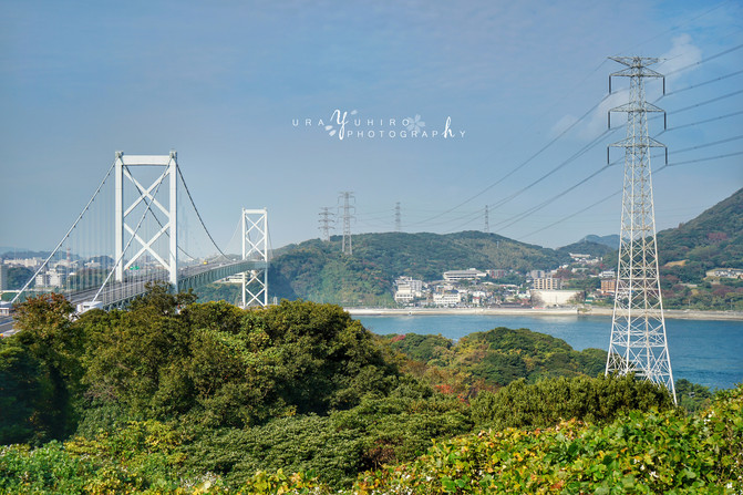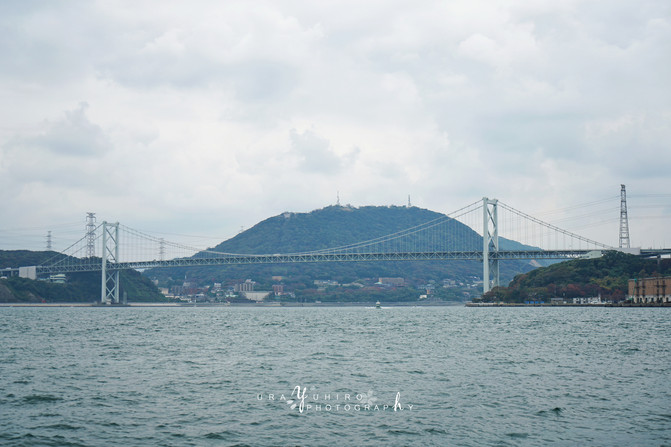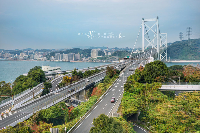展望台下方靠近公路側,還可以看到關門橋上來來往往的車輛。前一天宮島來回的時候也有走這條路。