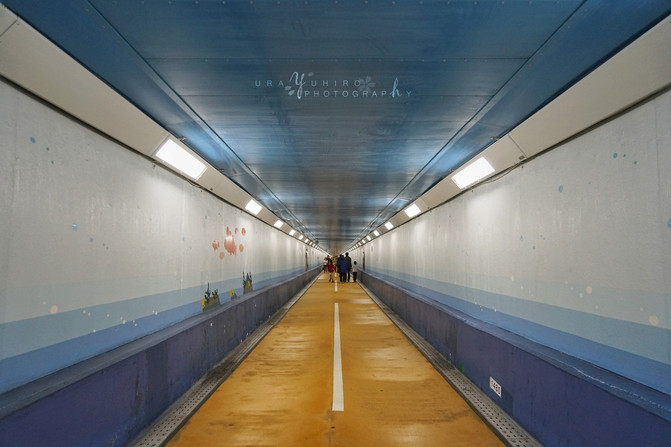和布刈是關門海峽最為狹窄的地方,自古以來便是交通要所。雖然說是步行踱過海峽,雖然說是在海下面行走,但說實話這個隧道看起來並沒有什麼感覺……儘管兩邊還很意思意思地畫了點小魚小藻……