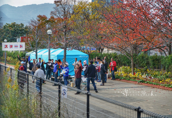 這天貌似正好有馬拉鬆活動,和列車上游客招手的工作人員。這裡是起點。