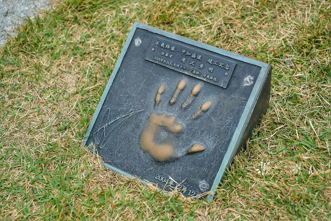 雕像下方有2005年NHK大河劇『義経』出演者的銅板手印。