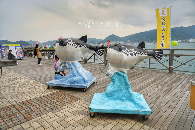 九州島和本州島的分界點。下關側是只河豚,北九州側是只章魚,可愛。