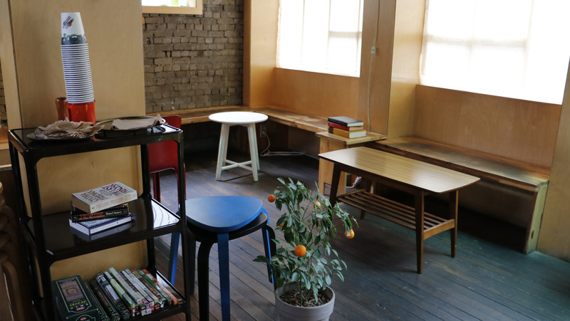 似用心又似隨意的擺設, 樣式各異的座椅, 讓人有種舒適安逸的居家氛圍.