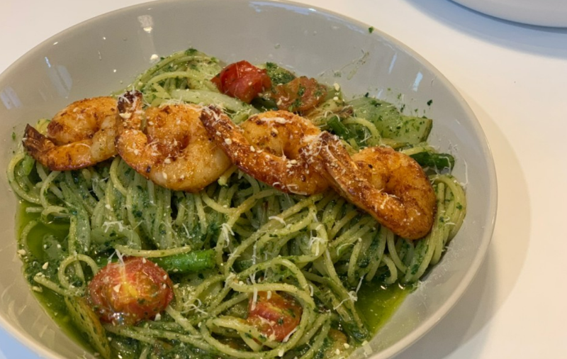 羅勒油意麵的味道也讓人難忘! 羅勒(一種香草) 獨特的香味,加上蒜香, 蝦仁的鮮香,意麵的濃香...吃完真的滿口留香呀!