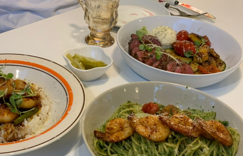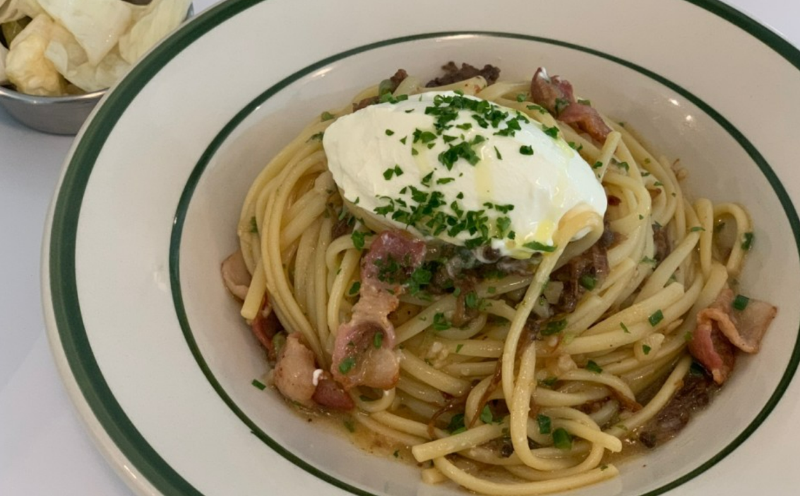 這家的招牌菜是板腱牛排和羅勒油意麵。