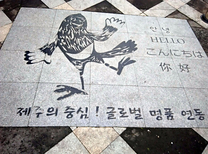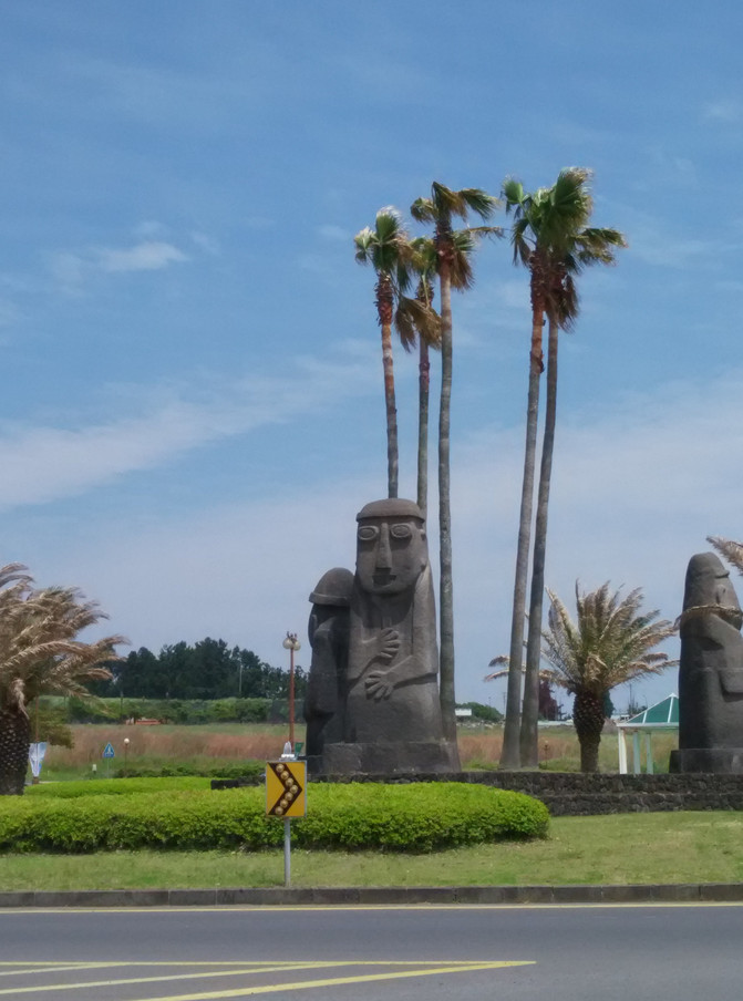 濟州街頭太陽當空照,海風一個勁兒地吹: