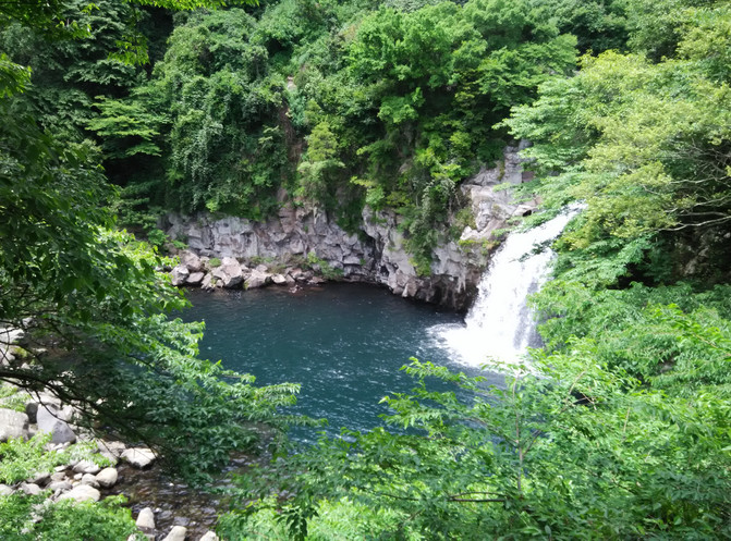 天帝淵瀑布的一汪碧水讓我想起了九寨溝,四周叢林密布,遊人三三兩兩,是個神仙似的去處。不得不說韓國人對於環境的保護還是很到位的。