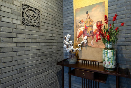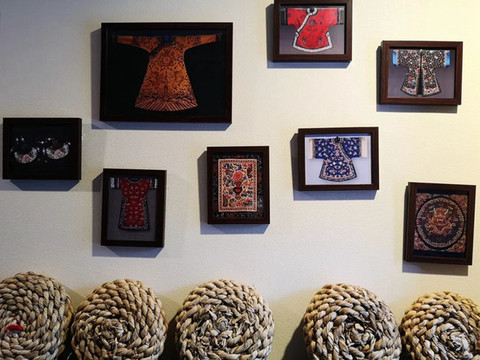 掛畫裡濃濃滿族風情,四處淘來的老木雕彷彿也封存了時光,皇家風十足的飾品、擺件... 做為正藍旗村落的一員,項林宿也是處處滿族風情。