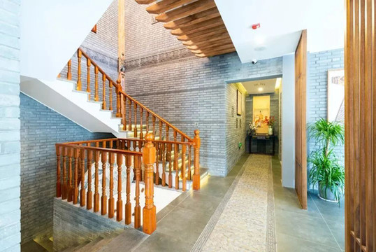 一進門,古風的一層大廳迎面而來,整面整面的落地窗將屋裡照得十分透亮,樓梯輾轉間,目光也是被牆面上的精緻浮雕牽引。
