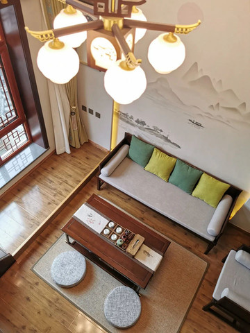 淡雅梅花、清新藍綠、淺淺熏香,將房間渲染得空明而清淺。與月夕互成犄角,共同擁有一個二層露台。