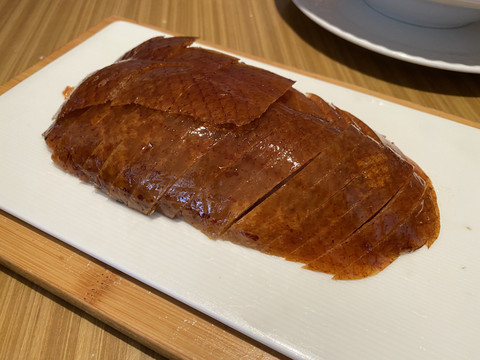 【紅館】最著名的就是烤鴨了,傳承150年的掛爐烤鴨,鴨皮酥脆,鴨肉軟嫩,配上甜醬小蔥,一口下去相當滿足!