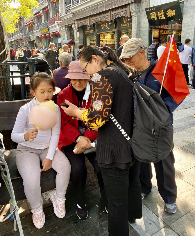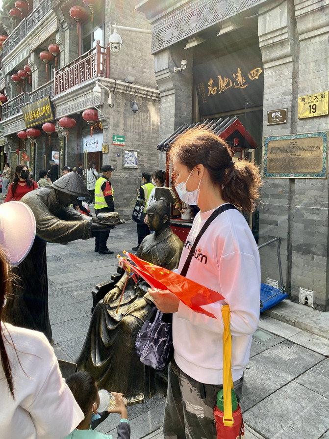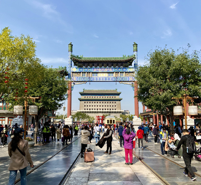 每每節假日,前門大街是當地百姓扶老攜幼打卡之地,也是旅遊團的主要景點之一。今年疫情控制住了,前門大街火爆,人流密集。