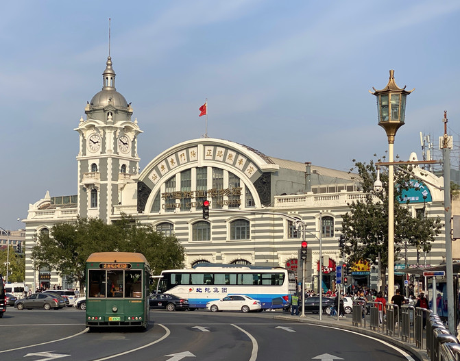 當時前門大街附近有火車站,現在留有舊址。