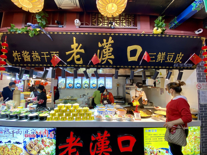 靠近正陽門入口的地方的廟街里熱鬧非凡,各種北京和外地的小吃攤一個接一個,漢口熱乾麵特別受到青睞。