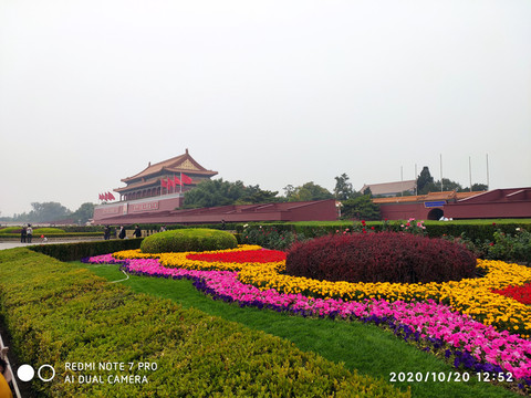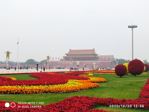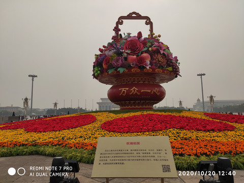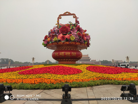 天安門廣場國慶花壇,從1986年開始,天安門廣場每年都會圍繞當年國家經濟、社會發展的新特點進行設計佈置廣場中心主題大型花壇供人們觀賞。1986年景觀名"天安麗日",被評為"北京十六景"之一。北京天安門廣場擺放的主題鮮明的立體花壇吸引了眾多市民、遊客前往拍照留念。圖為“祝福祖國”花壇。