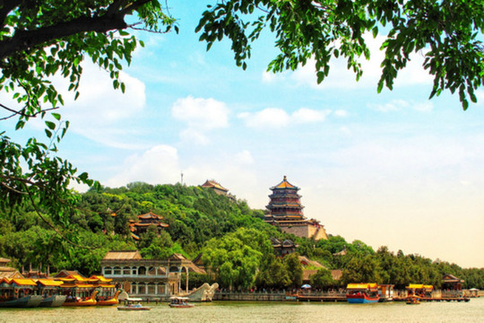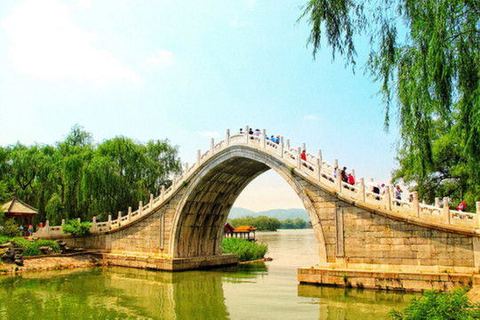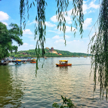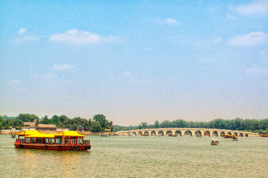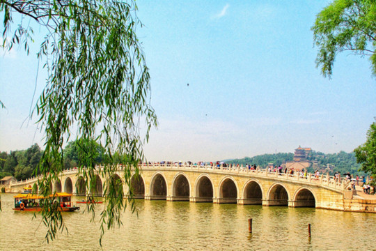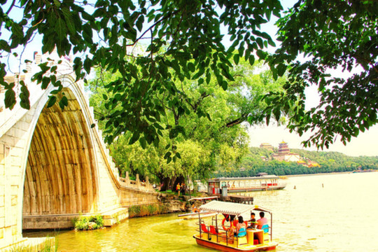 至美至愛頤和園,慢慢踱步6小時。草木葳蕤,翠綠的湖面上,荷葉點點。物意舒蘇。蜿蜒曲折的西堤美,一步一景,垂楊柳如簾似霧。西山群峰、玉泉塔影、 昆明 碧波、十七孔橋、藝術長廊……“何處燕山以暢情,無雙風月屬 昆明 。”