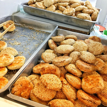 麻醬燒餅可能更受當地人喜歡,反正來買的以這個口味居多。我兩款都試了試。