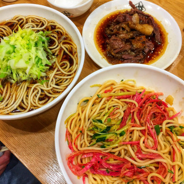 微信下單後送餐非常快,這裡的精華就在於燉牛肉的那一鍋老湯,牛肉老湯麵(不含牛肉)12元,雖然菜單上會有牛肉麵,但不建議點,還是直接點這種老湯素面,另點一碟醬牛肉才是準確姿勢。面圓溜勁道,比起 無錫 、 蘇州 的更多一分嚼頭,湯色很深,空口喝會偏鹹,肉香瀰漫,圓白菜絲很是清爽,這是一碗很香很好吃的面。