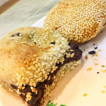 燒餅想要做的好,要用半發麵,炒熟的醬料裡面除了芝麻醬、花椒、鹽還要放適量的小茴香。先烙後烤最佳。麻醬燒餅的層次感還可以,外殼酥脆,麻醬和茴香味欠缺一些,但是勝在1元1個性價比極高,依然可以推薦。