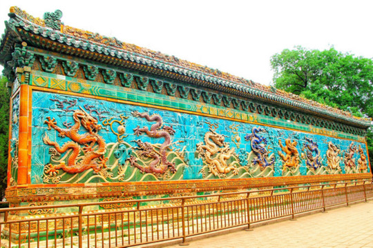 中國 現存有三大 九龍 壁,一座在故宮內,一座在 山西 大同 ,第三座就在 北海 公園內。這是我國現存唯一的彩色琉璃磚雙面 九龍 壁,據說鑲砌了大大小小共計635條龍。