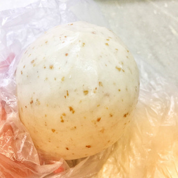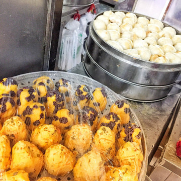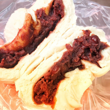 豆包2.5元/個,紅小豆做成的餡兒,還能看見顆顆軟軟的豆殼,細膩甜度不高,很香,我挺愛這個餡兒的,至於包子皮,用我們這裡的話講,就是沒發起來的“死面”,有點噎。