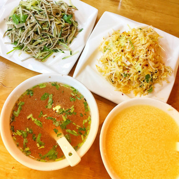 有多喜歡這家的驢肉火燒呢,不過是連著兩晚都去吃了而已。酸辣白菜心和五香豆腐絲量很大,拌的脆瓜瓜很水靈。配上粘稠好喝的小米粥,胃裡舒綿。