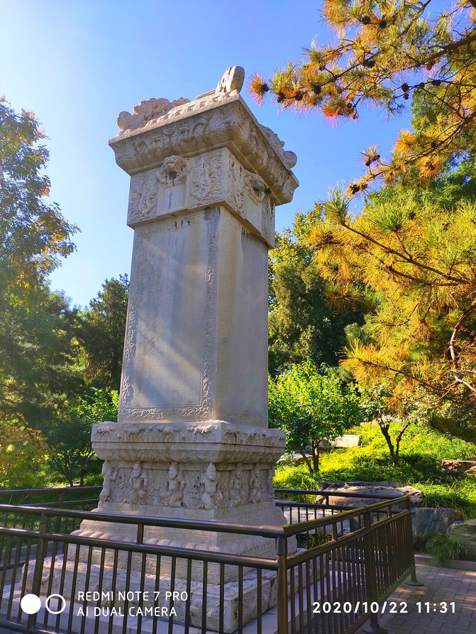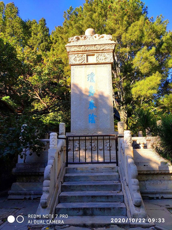 瓊島春陰碑“瓊島春陰”為金代“燕京八景”之一。瓊島春陰碑立於清乾隆十六年(公元1751年)。碑身正面攜刻乾隆皇帝御書“瓊島春陰”四個大字。其它三面分別攜刻乾隆題詩。