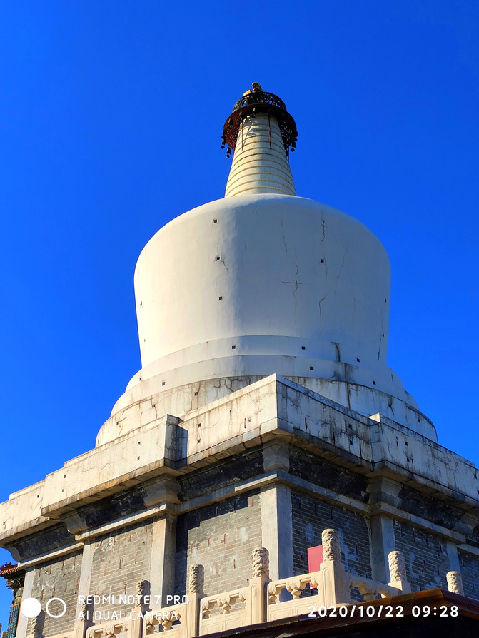 園內最為奪目,最為著名的景觀是高高聳立在園區瓊島上的那座白塔,它是公園的標杆景點。在園區湖岸不管從哪個角度遠遠望去,白塔猶如是一尊碩大的白玉雕塑的花瓶,又恰如是一位身披白紗的仙女,在百綠從中迎接人間從四面八方來游客