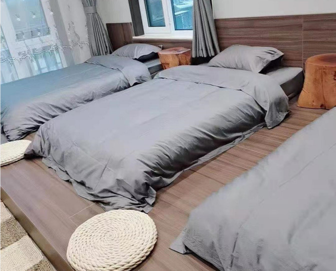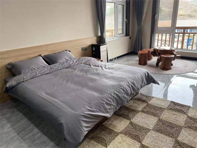 客房:整個房間十分明亮,打開窗簾陽光會全部曬進來,床上用品一客一換,每間客房乾淨整潔,設有標準間、三人間、大床房、家庭房等,每個房間設有 獨立衛生間、熱水器,熱水洗浴等,從客房看到的美景,藍天白雲,純粹的大自然,綠色的天然氧吧。
