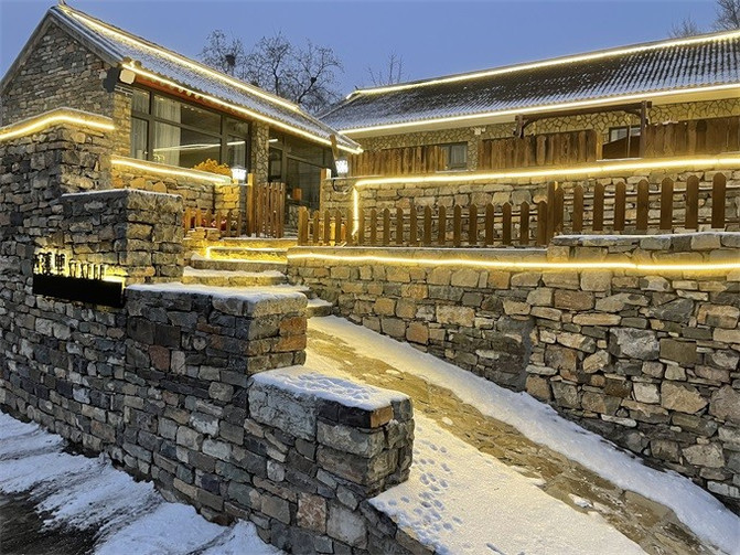 天津薊縣西井峪西溪里精品民宿,這里四面環山,綠樹蔽舍,因石而生、因石而居、因石而樂的古樸遺風。之所見皆為石,滿足了對鄉村、對記憶、對自然、對拙樸的一切想像,小院、老樹、潺潺水聲,石頭壘砌的房子,這分明是兒時的記憶,那時的夢想是遠方,是燈閃閃,是車馬喧的城市。