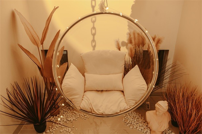 民宿公共區域有明亮的清新的複合空間,搭配雅緻吊椅,簡單利落的空間,米色沙發、實木家具到充滿森林感的木地板,入住民宿,主人還不定時送水果和甜品,服務很貼心。