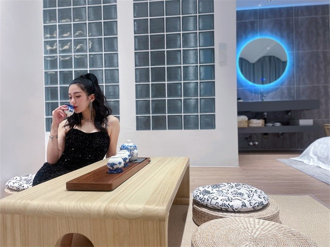 民宿客房:在配上房間裡自帶的小燈~整個氛圍感就出來了!冒著熱氣還有飄落的花瓣和帶著香氣的浴球,感覺自己就像是飄落人間的仙女一樣!女孩子的快樂就這麼簡單。