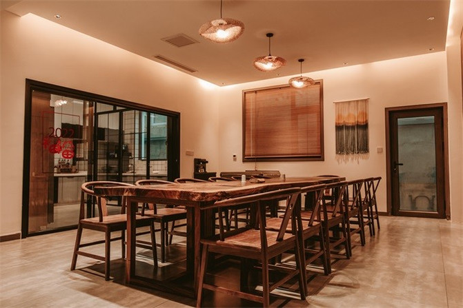 獨立的餐廳,廚房,廚房還配備了廚具餐具,可以自己開火做飯,附近還可以訂餐,可團建聚會20人,大家把美食擺出來,喜歡唱歌的朋友儘管高歌,想跳舞的,給DJ個手勢,馬上安排背景音樂。