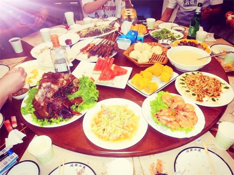 特色鄉村菜有,鐵鍋燉大魚,小雞燉蘑菇,燉豬蹄,豬肉燉粉條,野菜餑餑,滿滿的一桌子菜,散發出淡淡的肉香味,味道肉肥味美,獨具風味,一道道菜品色香味俱全。