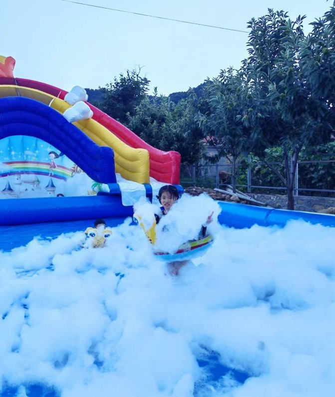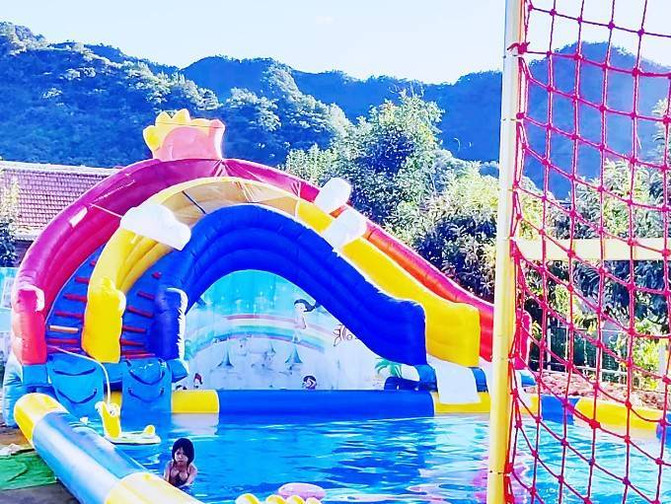 被這個民宿吸引的另一個原因,就是民宿有專屬的兒童樂園,許多的娛樂設施,在夏日的午後,在這蔚藍的泳池邊玩水,釋放天性的孩子們。