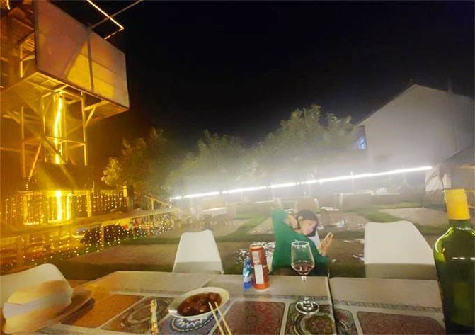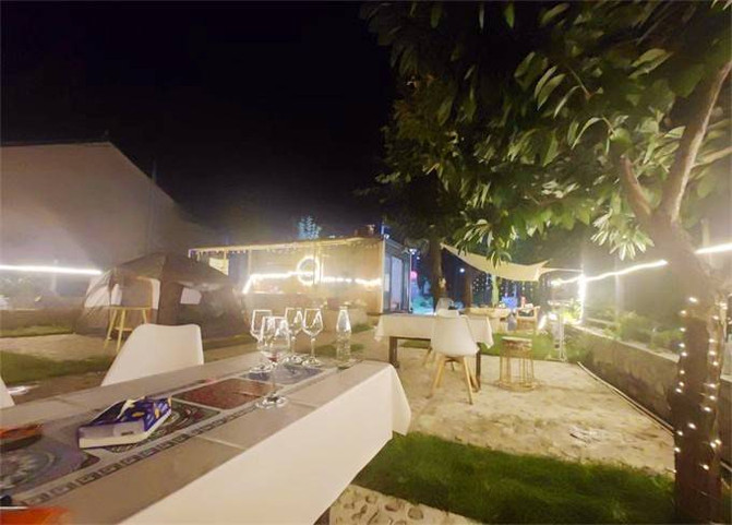 院內還有燒烤爐子和吃飯的桌椅,遮陽傘一應俱全,可愛又溫馨的燈光是民宿院子必備的,一進門口出的服務台設施十分齊全,夜晚看著星星,這裡真的太安靜了。