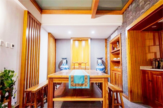 中式的茶室,娛樂活動室,在濃濃的中式複古中添加田園風,讓沉穩雅緻的空間融合現代清新,以開放、創新的設計思想及其尊貴的姿容,來豐富的儒雅的藝術底蘊。