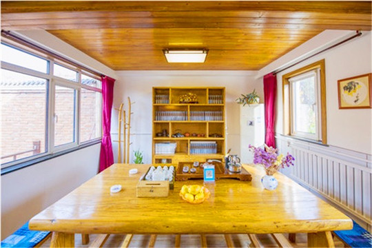 廚房餐廳都是中式的,裝修很樸素,就好像古代小酒館風格,民宿可提供廚房遊客可以自己做飯,附近可以預定美味的農家菜。
