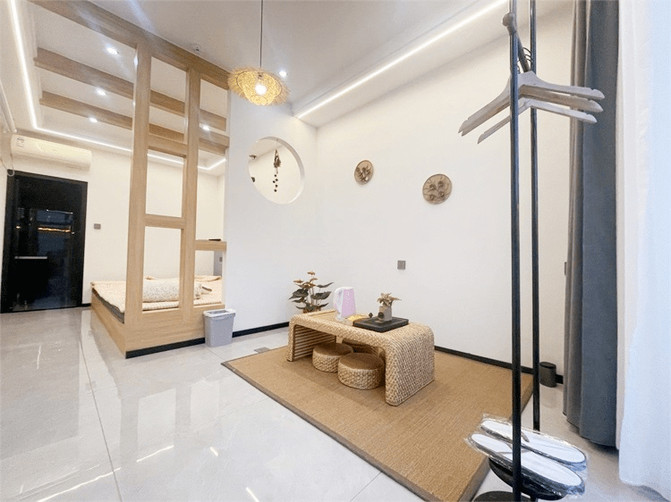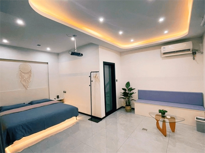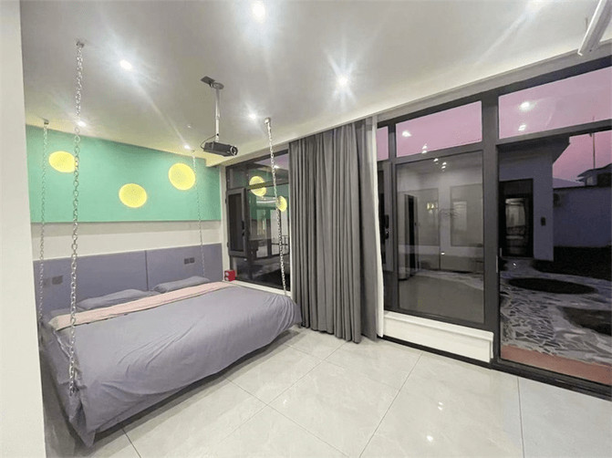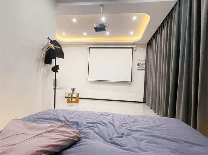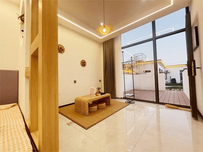 房間設施:整院6間房,住宿16到20人,房型:兩個榻榻米一個是日式風格,還有一個家庭房,全屋智能家居,所有客房設有智能投影儀,操作十分簡單,跟使用電視機一樣,也可以直接開機投射到白牆上。客房內空間寬敞,現代裝修,居室環境乾淨整潔。