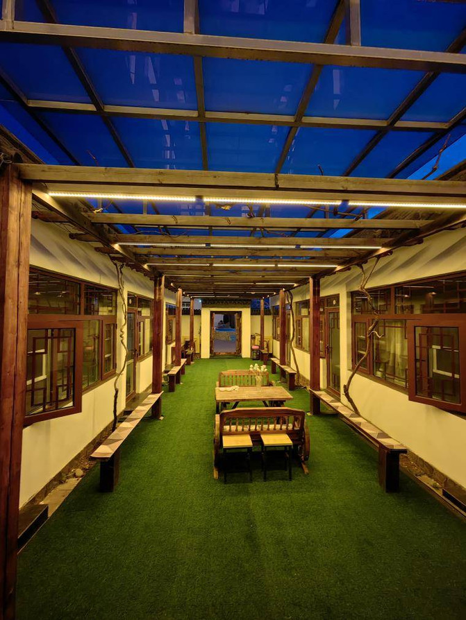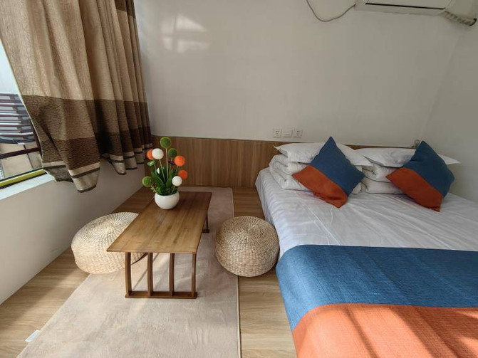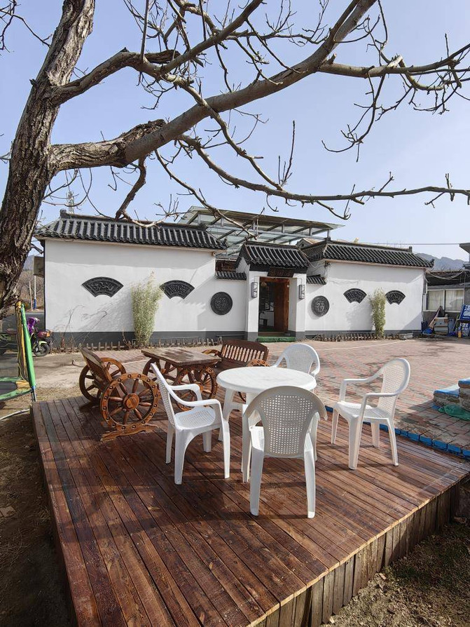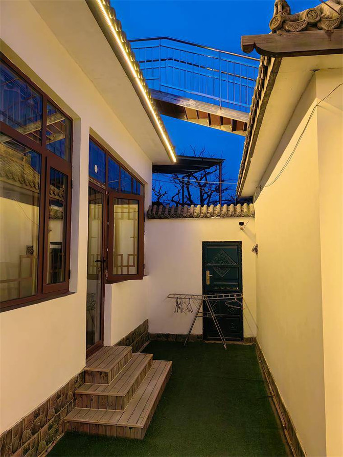 亮點特色: 四合院結構的小院子特別有格調,小門樓很有特點,走進去才發現別有洞天,門窗造型古典,密封好。房間分佈在院子四周,院子中央是休閒區,木質車輪桌椅可供大家休息聊天,喝茶,打牌都沒問題。更讓人意想不到的是屋頂也是休閒的區域。
