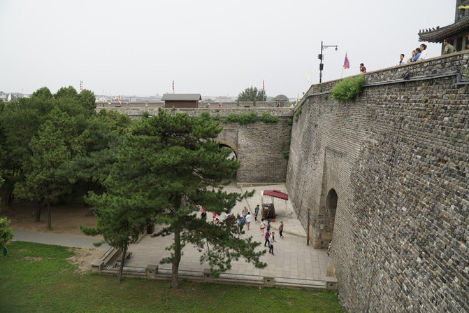 鎮東門前的城圈就是甕城,原來四個城門之外均有這樣的甕城,現只鎮東門甕城保留完整,周長317米,系建於城門外圍的防禦設施,既可集結兵力,又可誘敵入內,制敵於甕中。甕城之外還有羅城,即城外套城。