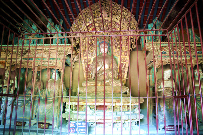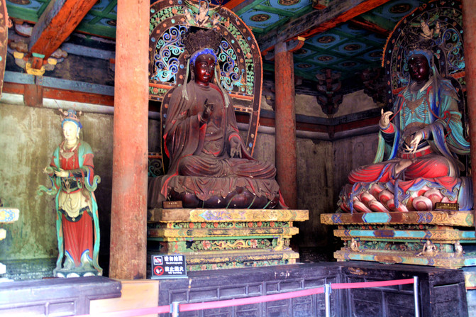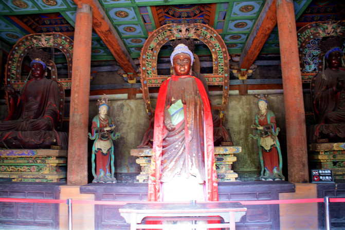 這里以彩塑的佛像聞名於世,佛教人物造型精準,神態逼真,相互之間互有呼應,給人雖莊重嚴肅但並不脫離生活的感覺。佛像既然是宗教作品,就必然受到宗教的限制,而工匠們也力圖衝破這種束縛,把他們心中的美好注入到作品中。當然,工匠造像也必須有根據,一是工匠們世代相傳的模板,二是其他寺廟現成的塑像,三是佛教經典中的描述,最後第四則是生活中的真人。而工匠們接觸最多的就是生活中的人物,這些各類人群的形像都可能被工匠直接或間接的塑入作品之中。