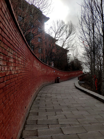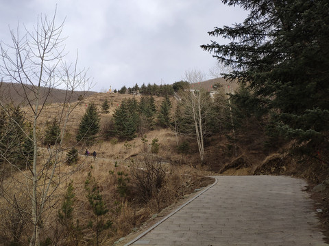 黛螺頂是五台山東台頂延伸下來的一個小小的山峰,垂直高度有400米,相當於一幢130多層高的摩天大廈,也是夠高的了,要想登頂,亦非舉足之勞。這條道路共有1080級台階,也稱“大智路”。這個路名和台階的級數,都與佛教內容有關。人們希望的是登上大智路,智慧大開,煩惱頓消。