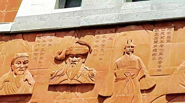 名人壁上鐫刻了與此地有關的帝王將相、歷史名士五十九人的浮雕像。