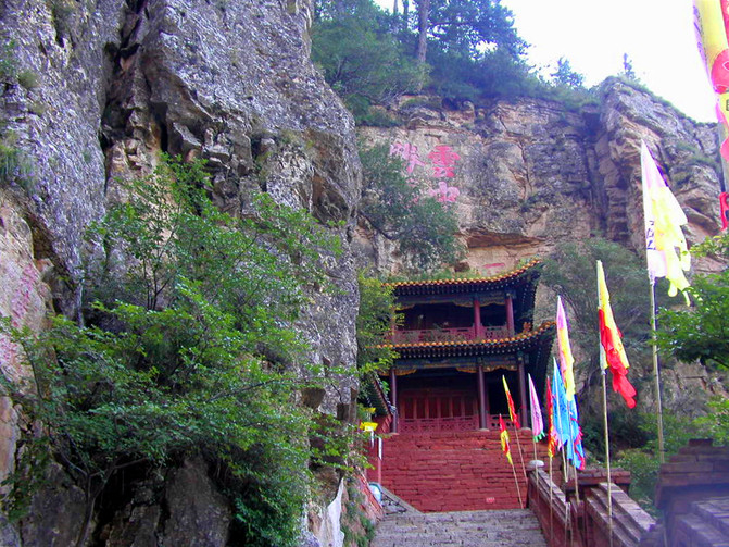 得一庵原住得一道士,明神宗時到恆山修行,活到康熙年間,壽高140多歲。閻道祠住的是他的兩個徒弟。這兩座廟修在懸崖上,雖不像懸空寺那樣用木棍支撐,卻亭台樓閣,玲瓏別緻,很有情趣。順路向前,就看到了以幽靜奇妙著稱的“飛石窟”,這是恆山18景中的“幽窟飛石”。飛石窟內外的岩壁上,刻有歷代名士的題刻,增色不少。