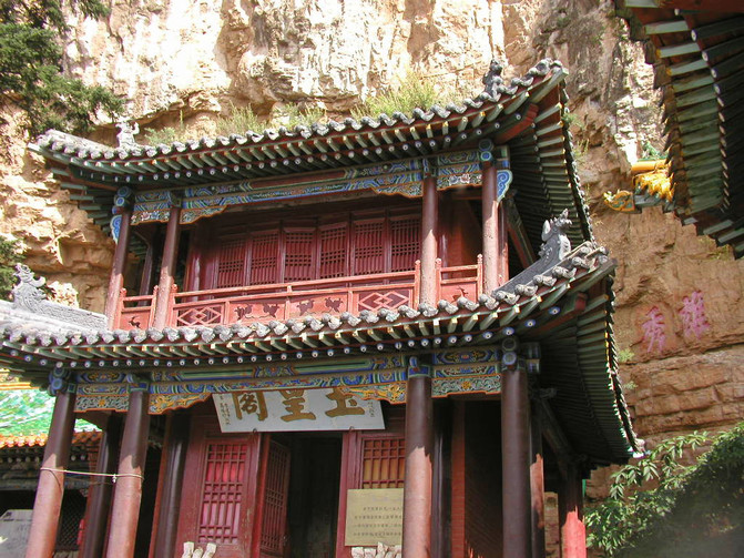 走出這裡沿絕壁上開鑿的石板路向南,就到了捨身崖上,這裡除烈女廟還有得一庵和閻道祠。恆山大都是道教的寺廟,其實道教才是我們中國人土生土長的宗教,而佛教是後來從印度傳過來的,但道教因為種種原因而一直沒有太大勢力,倒不如佛教信奉的人多。但在恆山,卻都是老道。道教供奉的神仙很多,但凡道教都有三清殿,供奉元始天尊、靈寶天尊和道德天尊;還有玉皇、紫微,堯、舜、禹號稱三元,據說是元始天尊口吐的三個孩子,因都生於月元之時,所以稱三元大帝;還有八仙過海裡的八仙;九天玄女,福祿壽三星等,總之道教供奉的神仙多而雜,不懂的也難了解其真諦,這大概也是道教發展不起來的原因。