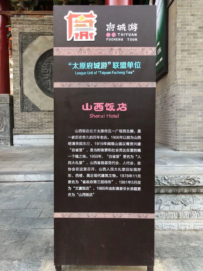 山西飯店就在公園外側。是閻錫山時期就在營業的高檔飯店,現在還在營業,主打晉菜。午晚餐自助套餐團購才135元。一個人沒去吃,哭~)