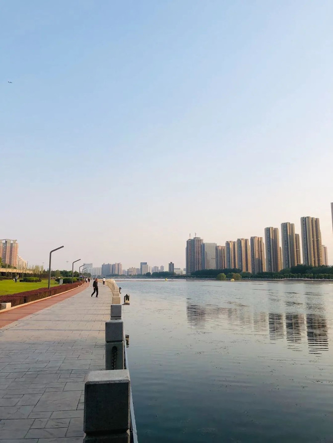 回到市區已是傍晚,北方日落晚,索性騎個單車去汾河邊看日落。汾河景色宜人,清爽舒適,岸邊自行車道和人行步道分立,寬闊有序,傍晚散步絕了。