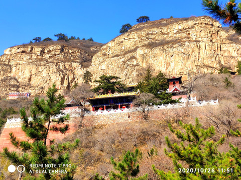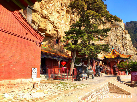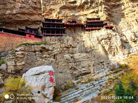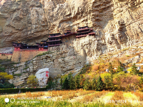 懸空寺位於恆山金龍峽西側翠屏峰的峭壁間,素有“懸空寺,半天高,三根馬尾空中吊”的俚語,以如臨深淵的險峻而著稱。該寺建成於1400年左右前北魏後期,是中國僅存的佛、道、儒三教合一的獨特寺廟。李白的《夜宿山寺》:危樓高百尺,手可摘星辰。不敢高聲語,恐驚天上人。就是對懸空寺的險峻危境的描寫。